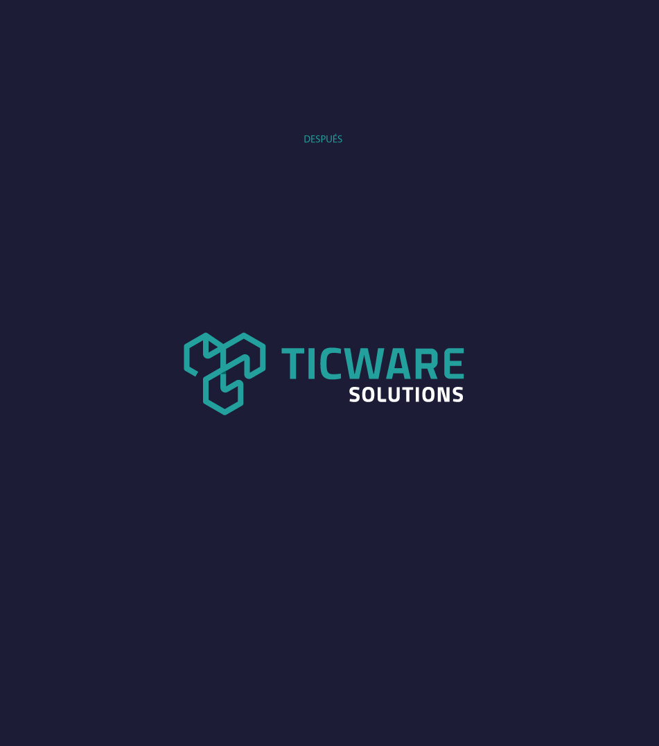 TICWARE, busca impactar en el mercado de las TICS teniendo un factor diferenciador entre su competencia, quieren generar una identidad única e impulsar los servicios de consultorías y desarrollo de software. Este rediseño implica como lineamiento creativo, conservar los 3 hexágonos de la marca anterior.